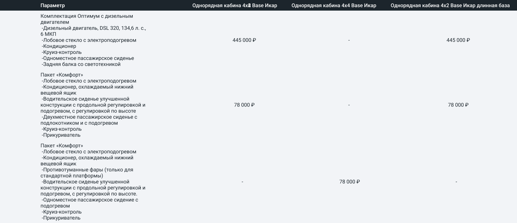 Сравнение комплектаций
